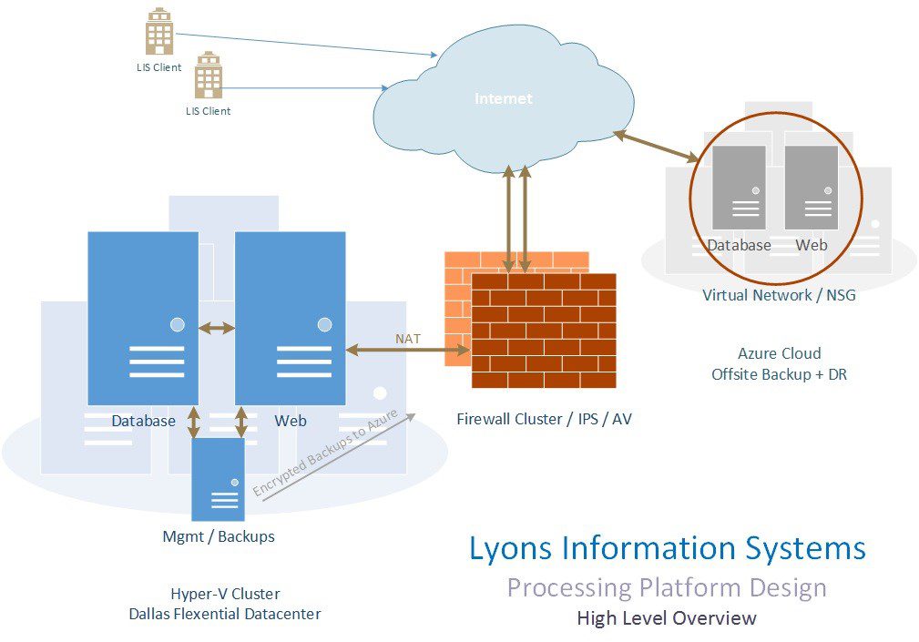 Lyons Information Systems, Inc.® can meet all of your information technology needs from custom designed applications to professional hosting solutions engineered to keep those solutions highly available. Our hosted application and database service is reliable, secure and affordable to insure that your business applications and data are always there when you need them. While this high-level overview was not intended to go into extensive detail, you can ascertain the level of thought and layers of protection put into place to ensure a secure and reliable platform exists to provide your application the availability you need.